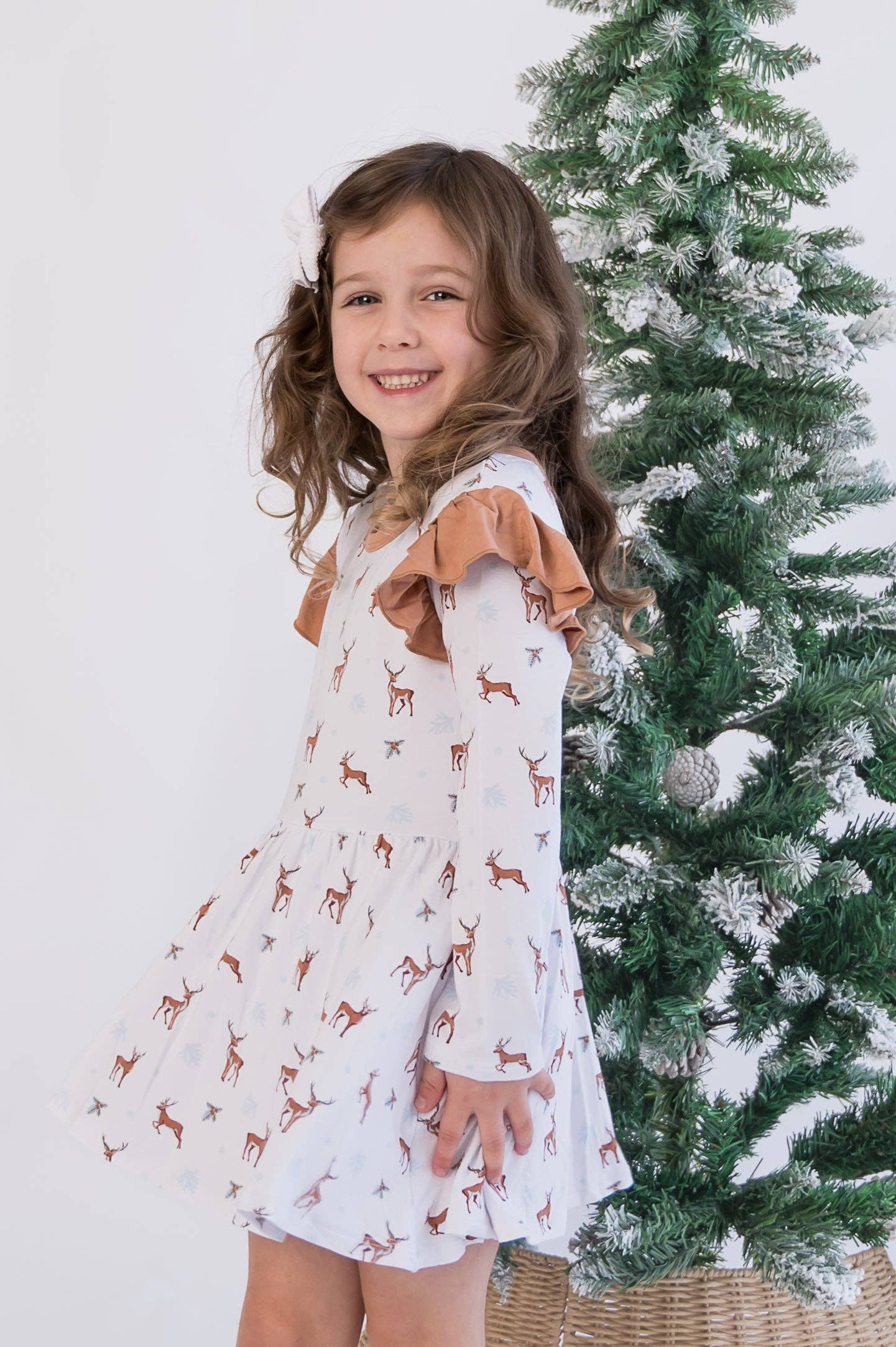 Reindeer | Long Sleeve Toddler Flutter Dress